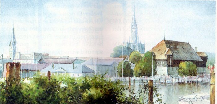 Dabei beschränkt sich der Künstler nicht nur auf die Deutsche Seite des Sees, sondern malt auch die idyllischen Ecken auf der Schweizer Seite. Aber nicht nur Landschaftsaquarelle gehören zu den Spezialitäten des Malers. Mit offenen Augen spaziert er z.B. durch die schönen Gassen von Konstanz und Stein am Rhein und setzt die schönsten Plätze künstlerisch um. Die neuen Landschaftsaquarelle von Hasso Haug entfernen sich immer mehr vom Gegenständlichen. Sie fangen in der Art und Weise der Impressionisten gekonnt Licht und Stimmungen ein. Der reduzierte Pinselstrich und die sensible Farbgebung suggerieren eine meditative Stimmung. Aber Hasso ist auch seinem älteren Stil treu geblieben. So kann der Kunstliebhaber wunderschöne Aquarelle erwerben, die im naturalistischem Stil gemalt wurden. Neben den Aquarellen werden auch Ölbilder ausgestellt. Hasso Haug kann im Stil der alten Meister malen und beherrscht auch noch die alte Technik des Ölfarbenmischens, wie sie die Großen von einst für ihre Werke verwendet haben.