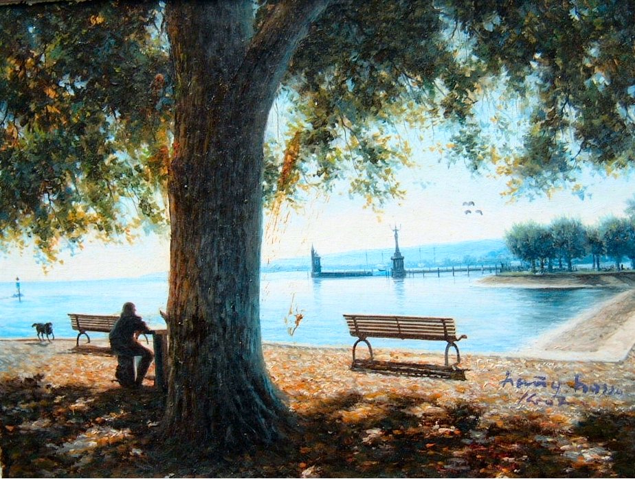 Sehnsucht Hafen (Öl) | Abendstimmung in der winterlichen Seestrasse (Öl) | Imperia in der Hafeneinfahrt (Öl) | Konstanz Stadtgarten (Öl) |