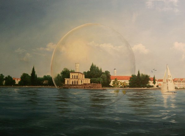 Blick auf Birnau (Aquarell) | Korsar im Abendwind (Öl) | Konstanz in der Kugel (Öl) | Dingelsdorf (Öl) |